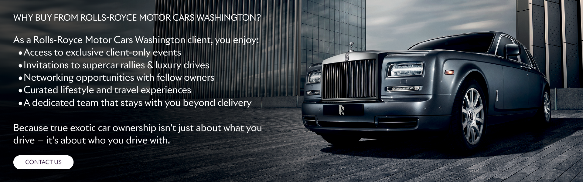 Al hacer clic a continuación, acepto recibir llamadas y mensajes de texto automáticos con fines comerciales de Rolls-Royce Motor Cars Washington. El consentimiento no es una condición para la compra. Pueden aplicarse tarifas por mensajes y datos. La frecuencia de los mensajes depende de su actividad. Puede darse de baja en cualquier momento respondiendo STOP. Para obtener más información, responda HELP en cualquier momento. También aceptola política de privacidad de los proveedores de servicios de mensajería de texto. Política de privacidad