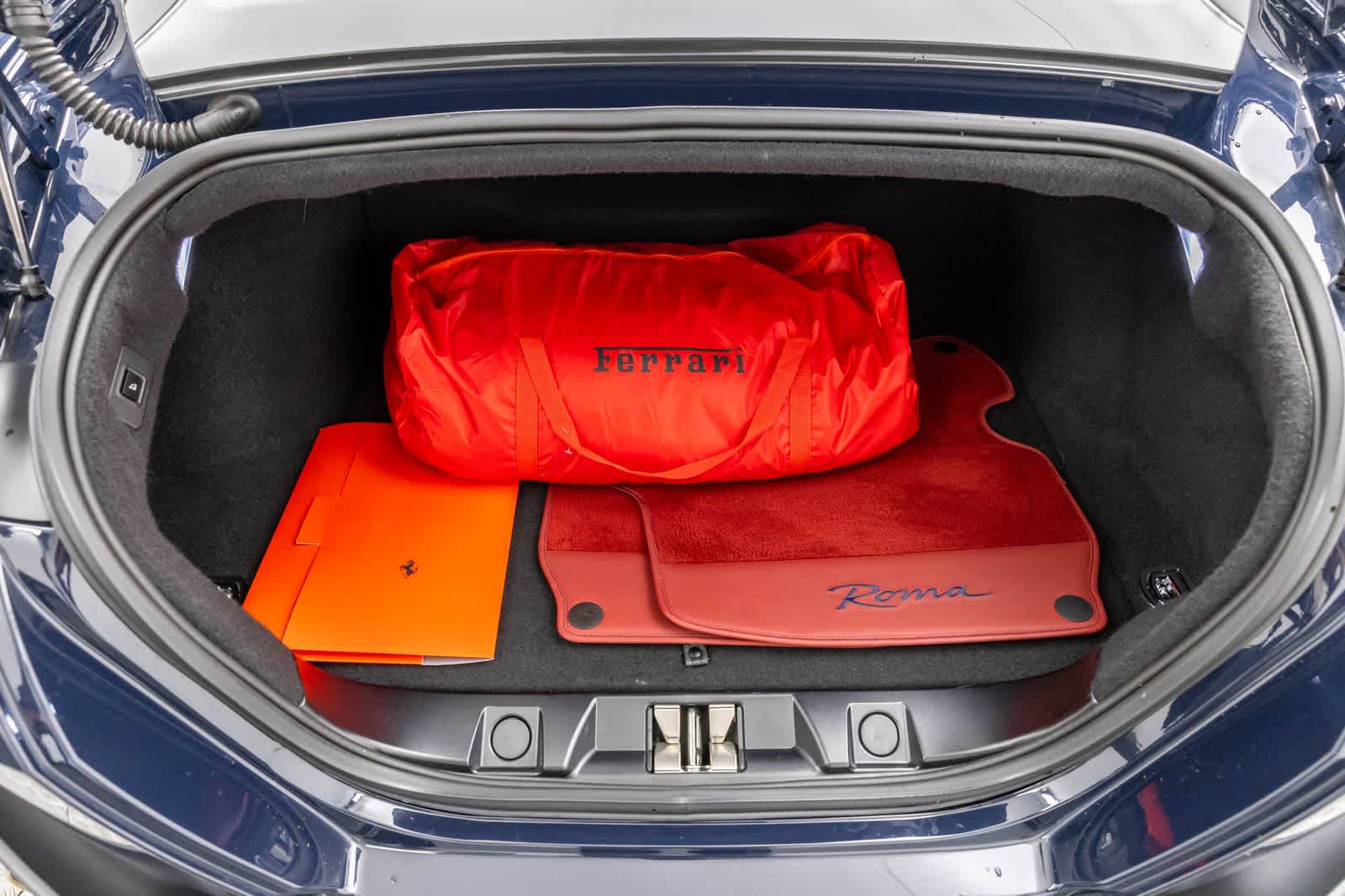 Blu Roma 2021 Ferrari Roma tracción trasera, caja de cambios manual de 8 velocidades, motor V8 de 3,9 litros,