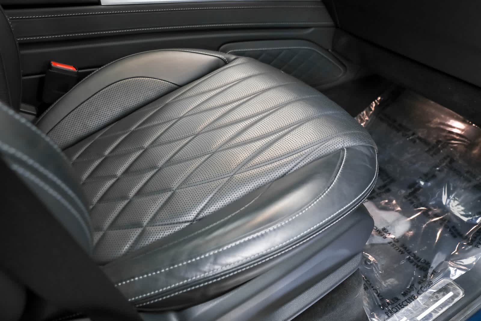- Parachoques delantero del color de la carrocería con banda de roce cromada/acento fascia, inserción cromada en el parachoques, 1 gancho de remolque y protector de cepillo de acero inoxidable.