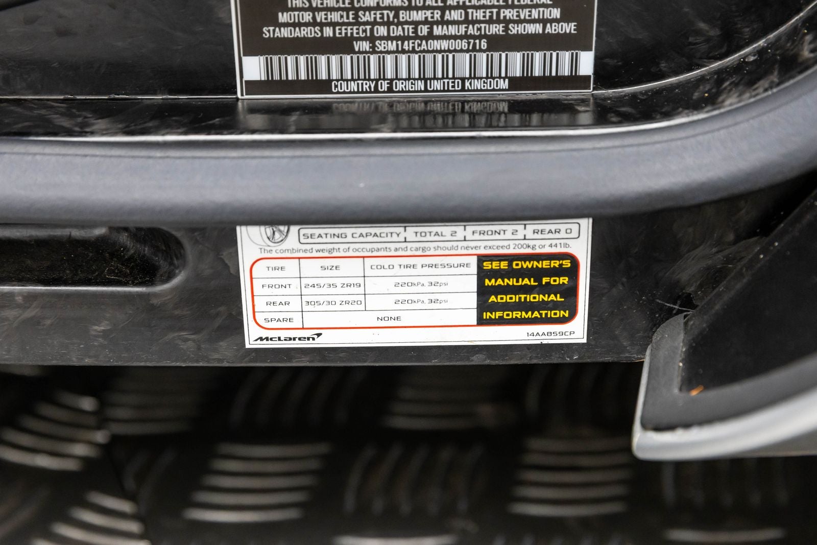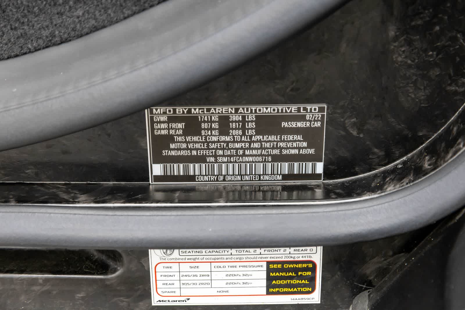 » con 4 altavoces, frenos ABS, suspensión adaptativa, aire acondicionado, llantas de aleación, radio AM/FM, radio AM/FM: SiriusXM, Suspensión con nivelación automática, Climatizador automático, Frenos de cerámica de carbono con pinzas rojas, Discos de freno de cerámica: delanteros y traseros, Brújula, Techo rígido convertible, Airbags frontales de doble impacto, Airbags laterales delanteros de doble impacto, Control electrónico de estabilidad, Suspensión independiente en las cuatro ruedas, Barra estabilizadora delantera, Climatizador delantero de doble zona, Retrovisores exteriores calefactables, Iluminación de entrada, Protección integrada contra vuelcos, Airbag de rodillas, Aviso de presión baja en los neumáticos, Telemetría de pista McLaren con 3 cámaras, Paquete Negro Definido por MSO, Capó de fibra de carbono definido por MSO, Puente aerodinámico trasero de fibra de carbono definido por MSO, Volante de fibra de carbono definido por MSO, Cubierta de fibra de carbono definida por MSO, Sistema de navegación, Paquete Performance Plus, Asiento del conductor eléctrico, Dirección asistida, Elevalunas eléctricos, Sistema de datos de radio, Radio: sistema de audio Bowers & Wilkins de 12 altavoces, acceso sin llave a distancia, escape deportivo, control de tracción, llantas: 19 delante y 20 detrás, forjadas de 10 radios.